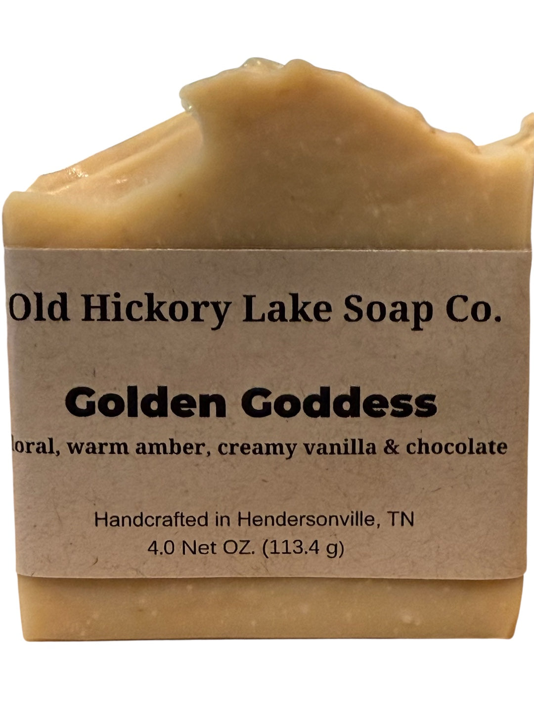 Embrace the playful spirit of our Golden Goddess Soap Bar. Infused with floral scents, cozy amber, creamy vanilla, and luscious chocolate, it gently cleanses. Enhanced with nourishing colloidal oats, this soap makes every bath a warm and joyful pampering experience.